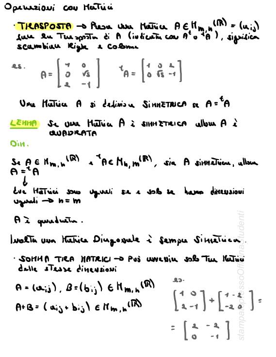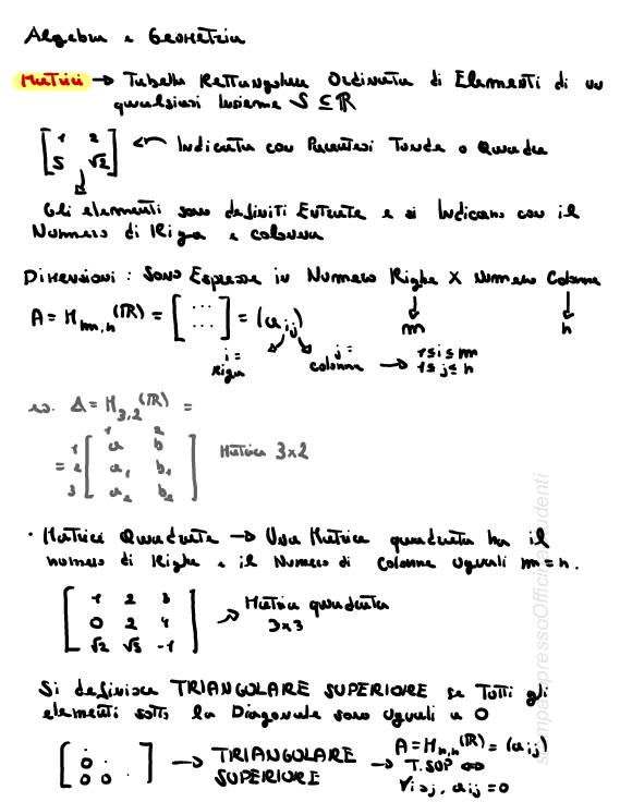 Appunti per scritto e orale di Algebra e Geometria – presi in classe, integrati con slide e esempi. prof. Dino Festi, redatti da Antonio Solimeno