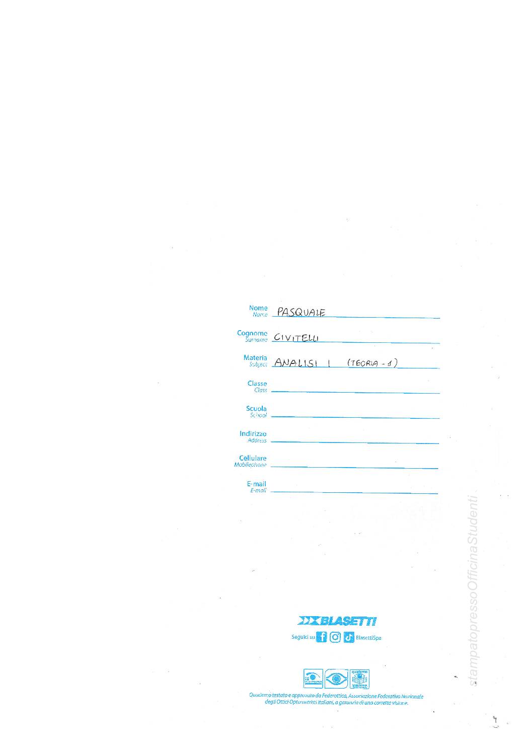 Appunti del corso di Analisi Matematica I tenuto dal prof Radice e redatti da Pasquale Civitelli, 9 cfu