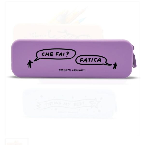 Gli astucci One Color Disegnetti Depressetti, nati dalla collaborazione con l’illustratrice Elisa Shori, sono realizzati in silicone (18,5×12,5×2,4 cm) con stampa serigrafica e logo a rilievo. Non solo funzionali, ma autentici capolavori da collezionare, uniscono arte e praticità per rendere ogni giorno unico.