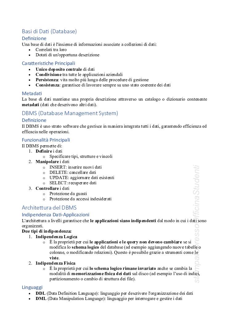 Banca dati: la banca di dati informatica con cui Officinastudenti ha organizzato e catalogato gli Appunti e li ha resi consultabili e visionabili in anteprima parziale nell’apposita sezione del Sito;