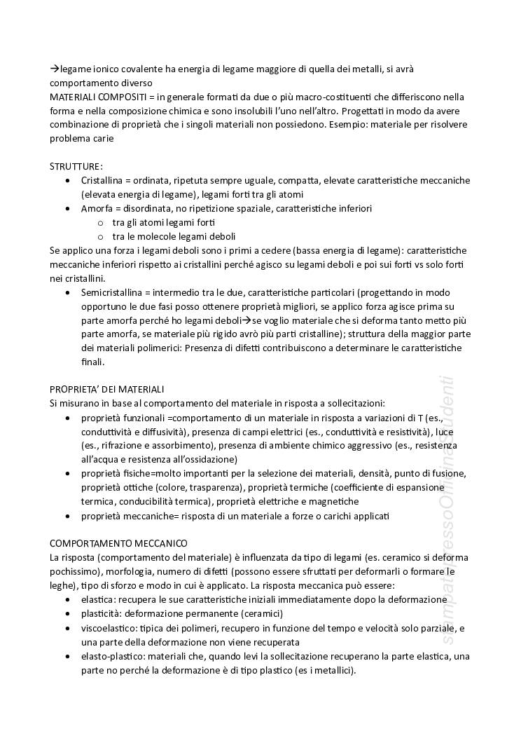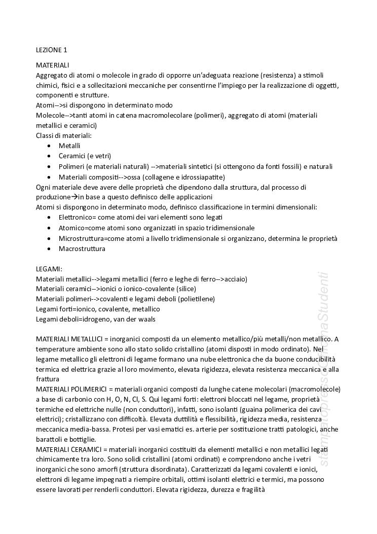 Appunti completi del corso della prima parte (Biomateriali), tenuto dal prof Farè e redatti da Patrizia Magnaghi