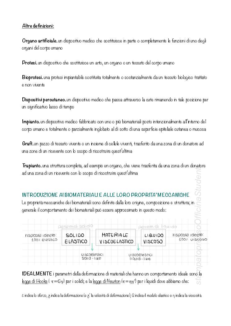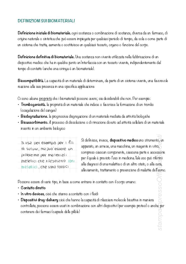 Appunti del corso di Biomateriali tenuto dal prof Filippo e redatti da Davide Monticelli