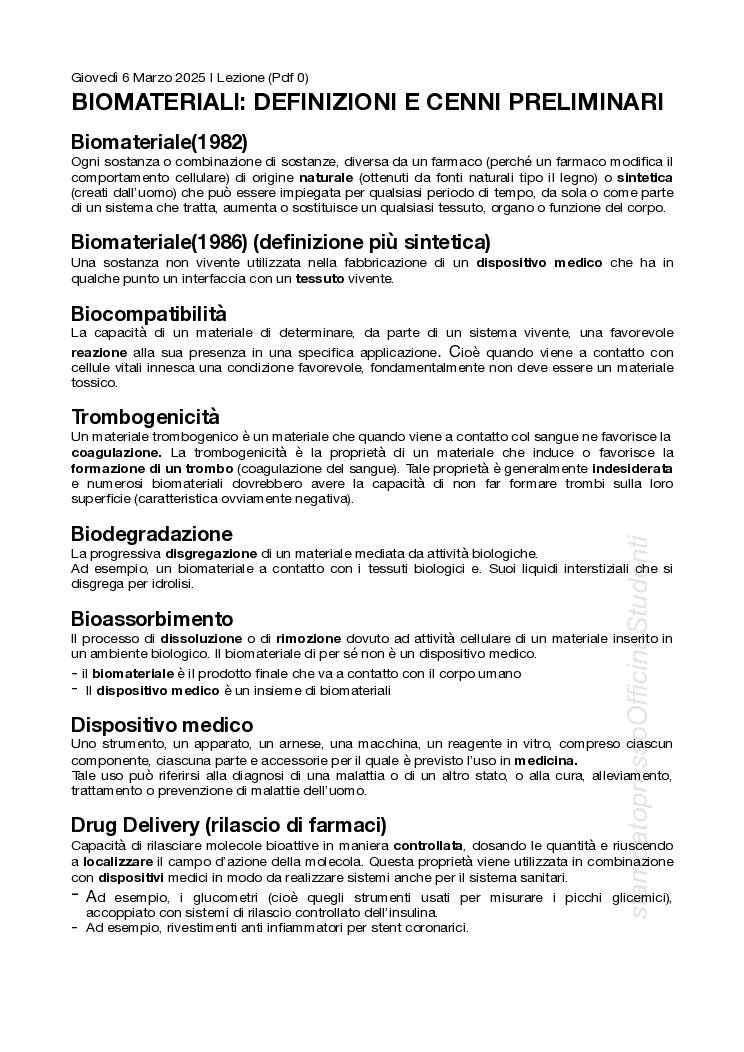 Appunti del corso di Biomateriali tenuto dal prof. Francesco Urciuolo nell’anno accademico 2024/2025, redatti da Simona Annecchiarico. Gli appunti contengono le slide fornite dal docente rielaborate con le sbobine di ogni lezione, con spiegazioni chiare e dettagliate, oltre a tutti gli esempi svolti in classe.