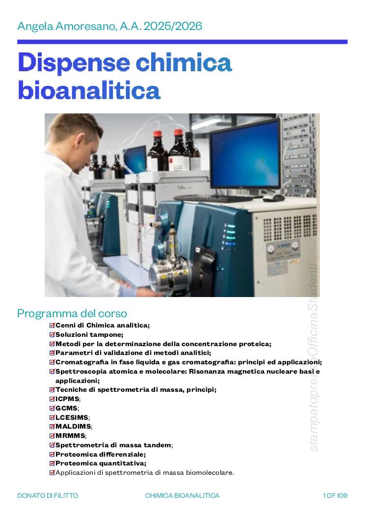 dispense del corso di Bioanalitica complete di tutto, usate per passare l’esame a pieni voti, tenuto dal prof Moresano e redatti da Donato Di Filitto