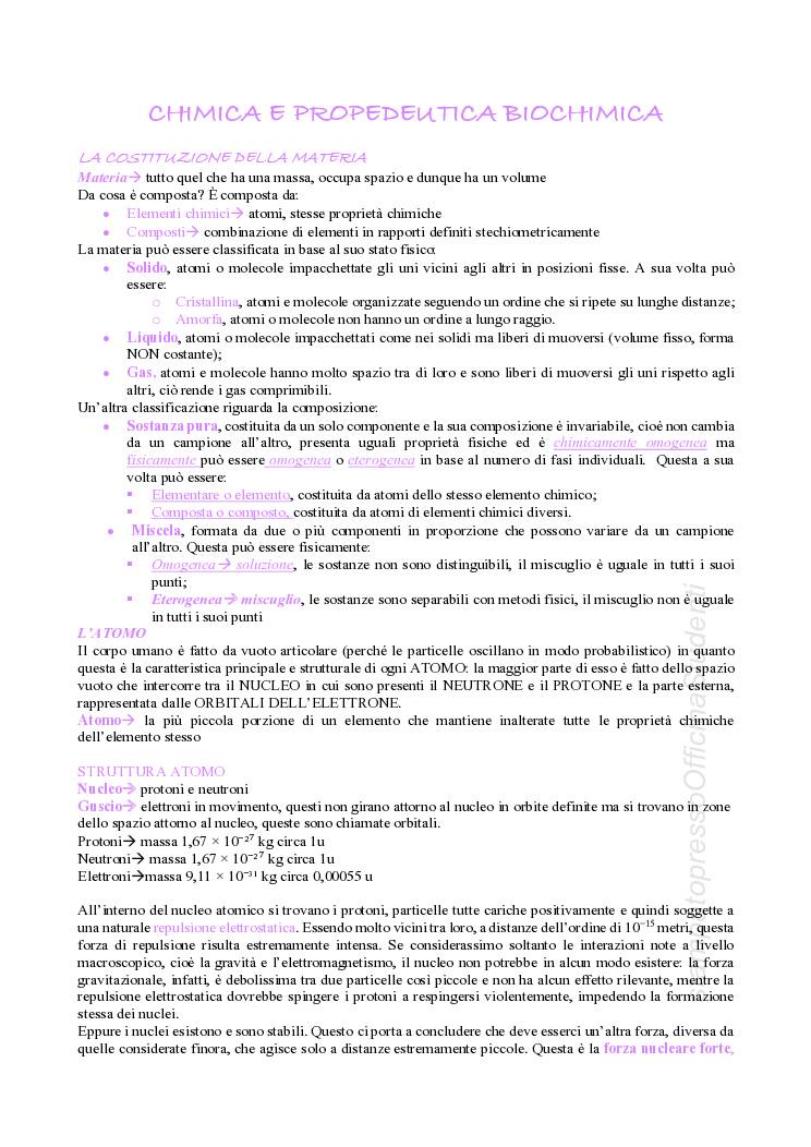 Appunti integrati con libro e slides del professore di Chimica e Propedeutica Biochimica per il semestre filtro, che mi hanno permesso di ottenere 26! Appunti del corso tenuto dai prof Bellini, Hanau, Manfrinato e Trentini, redatti da Martina Bilotta