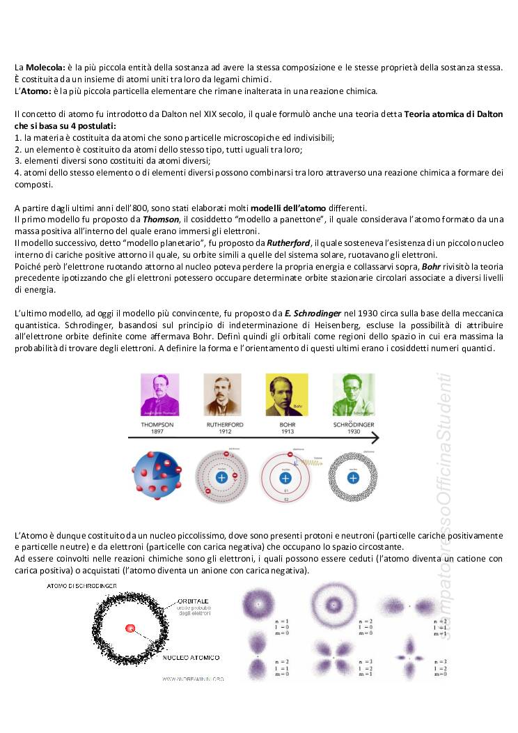 appunti presi a lezione ed integrati con immagini e definizioni presi dal libro di Chimica Generale ed Inorganica editore Edises, consigliato dal professore.Gli appunti sono utili al sostentamento della prova orale in particolare