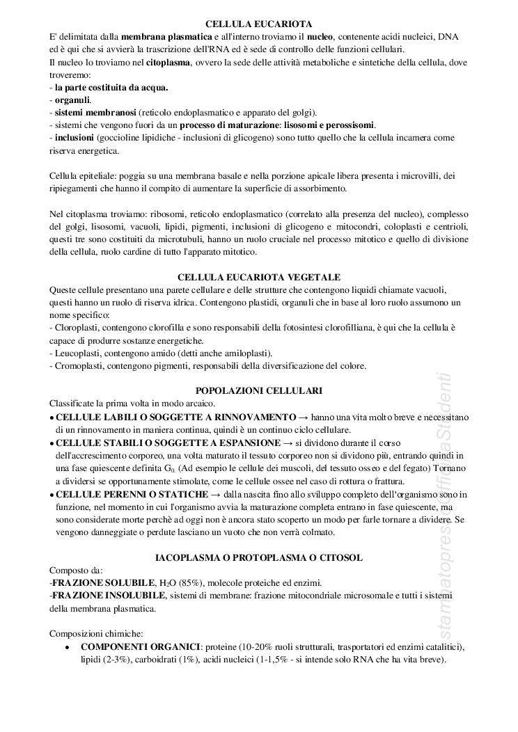 Contiene tutte le sbobinature del corso di Citologia tenuto dal prof Maisano e redatti da Anita Farinella