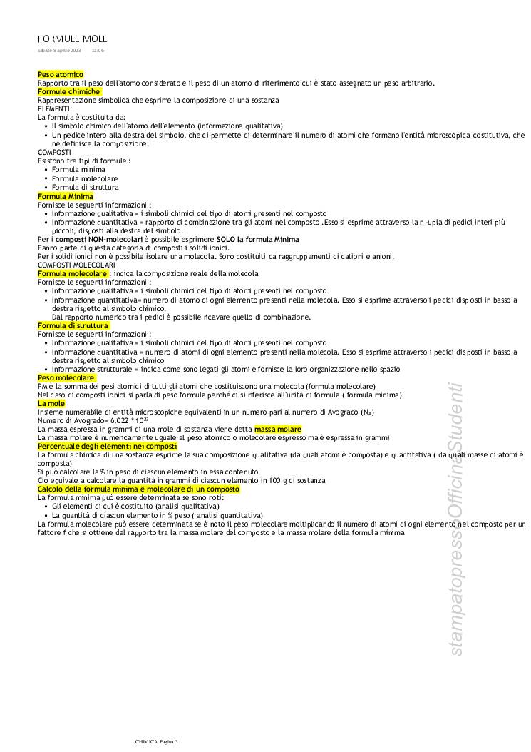 Appunti riguardanti le formule di mole , l’atono, la tavola periodica, il legame chimico, le soluzioni, le interazioni intermolecolari, la teoria del legame, gas ideali, teoria cinetica dei gas, Dalton, gas reali, risonanza ed orbitali, solidi , legame metallico , termodinamica , equilibrio di fase, equilibrio chimico, cinetica chimica ed elettrochimica prof Ambrogi e redatti da Pina Nuzzo