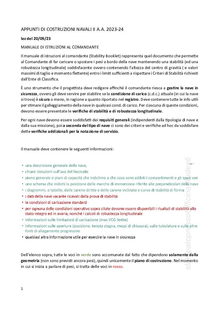 Appunti del corso di Costruzioni Navali II tenuto dalla prof Acanfora e redatti da Enrico Cuccurullo, 12 cfu