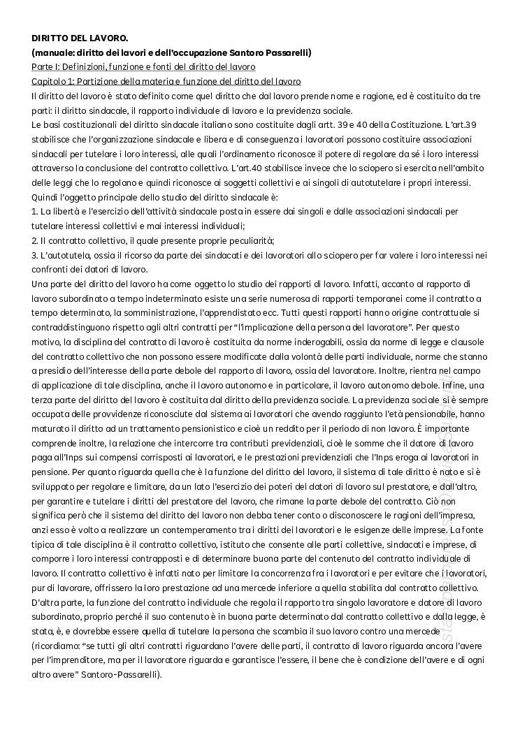 Riassunto completo e sostitutivo del manuale Diritto dei lavori e dell’occupazione di Santoro Passarelli per la preparazione dell’esame, comprende anche la parte di diritto sindacale. Tenuto dai prof Cairoli, Preteroti