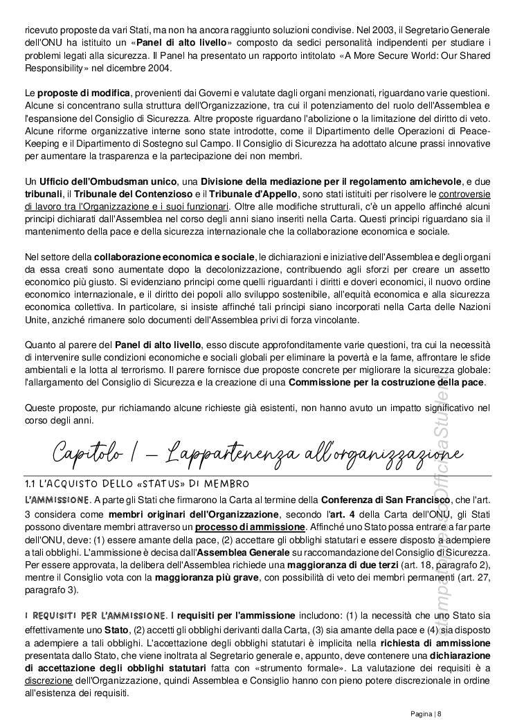 Riassunto di tutti i capitoli del manuale Diritto delle organizzazioni internazionali, di Conforti e Focarelli. Appunti del corso tenuto dal prof Grado e redatti da Nadia Martorana