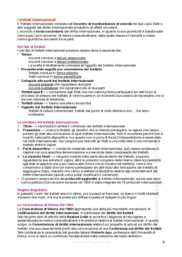 Appunti di Diritto Internazionale (libro+lezioni del professore). Gli appunti sono divisi in base agli argomenti presenti sia nel libro che spiegati a lezione e presentano una varietà di esempi sia attuali che non. Appunti del corso tenuto dal prof Manca e redatti da Alice Radi