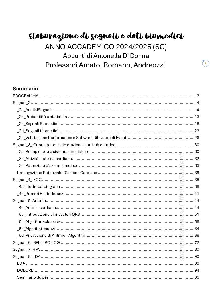 Appunti del corso di ESDB dell’anno 2024/2025 della sede SG (le lezioni sono state svolte parallelamente ad Agnano con gli stessi contenuti) + ESERCITAZIONI accurate di MATLAB SVOLTE IN CLASSE E COMMENTATE. Trascrizione fedele delle slides del corso (divisi per argomenti così come pubblicate sul docenti, i titoli corrispondono ai nomi dei powerpoint). Appunti presi in classe delle spiegazioni della professoressa Romano e del professor Amato + sbobinatura delle lezioni del professor Andreozzi; tutte le “aggiunte” sono in blu in modo tale da porter riconoscere il contenuto delle spiegazioni dalle slides (si consiglia dunque una stampa a colori). !!! Fare attenzione ai margini molto stretti, probabilmente consigliata una rilegatura a spirale !!! Esame superato con il amssimo della valutazione. Redatti da Antonella Di Donna