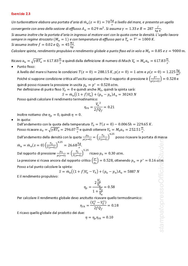 Esercizi per l’esame di Propulsione Aerospaziale 9 CFU del professore Raffaele Savino. Corso di laurea triennale in Ingegneria Aerospaziale, terzo anno, II semestre. Anno accademico 2023/2024. Esercizi svolti dallo studente e alcuni dal docente, poi ricontrollati e corretti dopo aver svolto l’esame. Redatti da Luca Ferrigno.