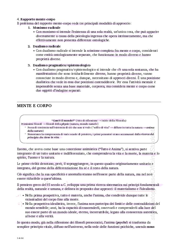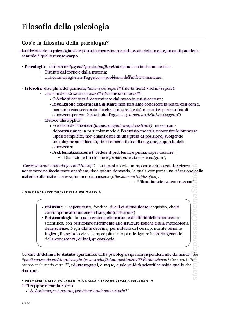 Appunti del corso per l’esame di Filosofia della psicologia tenuto dal prof Elena Paola Carola Alessiato e redatti da Rita Maglio. Sono stati integrati i seguenti manuali (e le lezioni in aula): – Carmela Morabito, Introduzione alla storia della psicologia, Laterza 2007. – Sandro Nannini: L’anima e il corpo. Un’introduzione storica alla filosofia della mente, Laterza 2002.