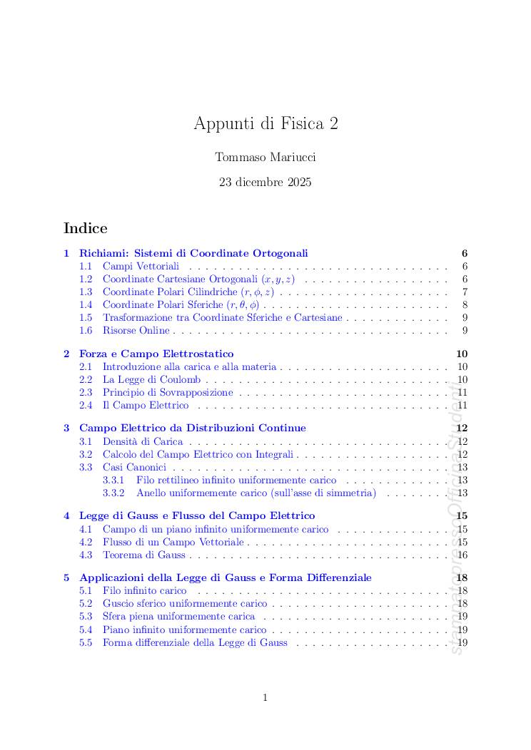 Appunti completi del corso di Fisica 2 tenuto dal Professor Alberto Toccafondi e redatti da Tommaso Mariucci, presso l’Università degli studi di Siena durante l’anno accademico 2025-2026.