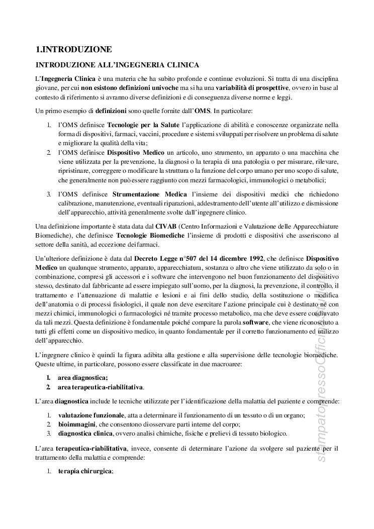 Appunti del corso di Fondamenti di Ingegneria Clinica tenuto dal prof Sansone e redatti da Giovanna Paola Musco, 6 cfu