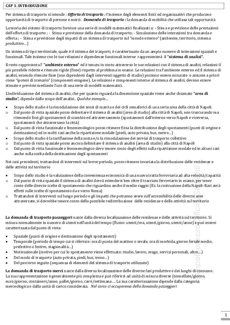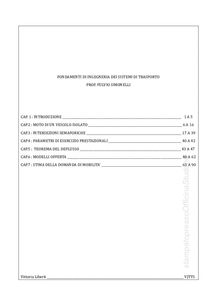 Appunti del corso di FONDAMENTI DI INGEGNERIA DEI SISTEMI DI TRASPORTO tenuto dal prof Simonelli e redatti da Maria Vittoria Liberti