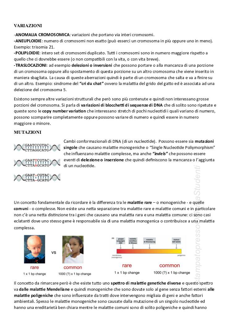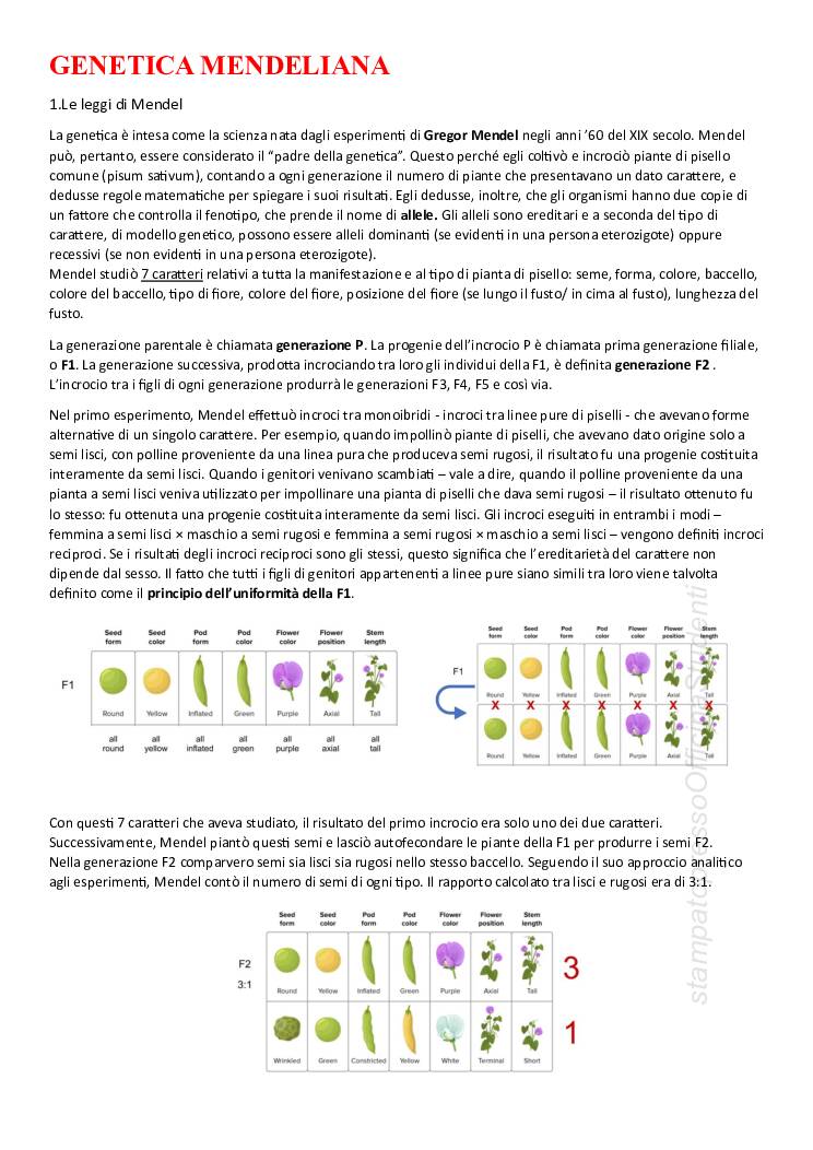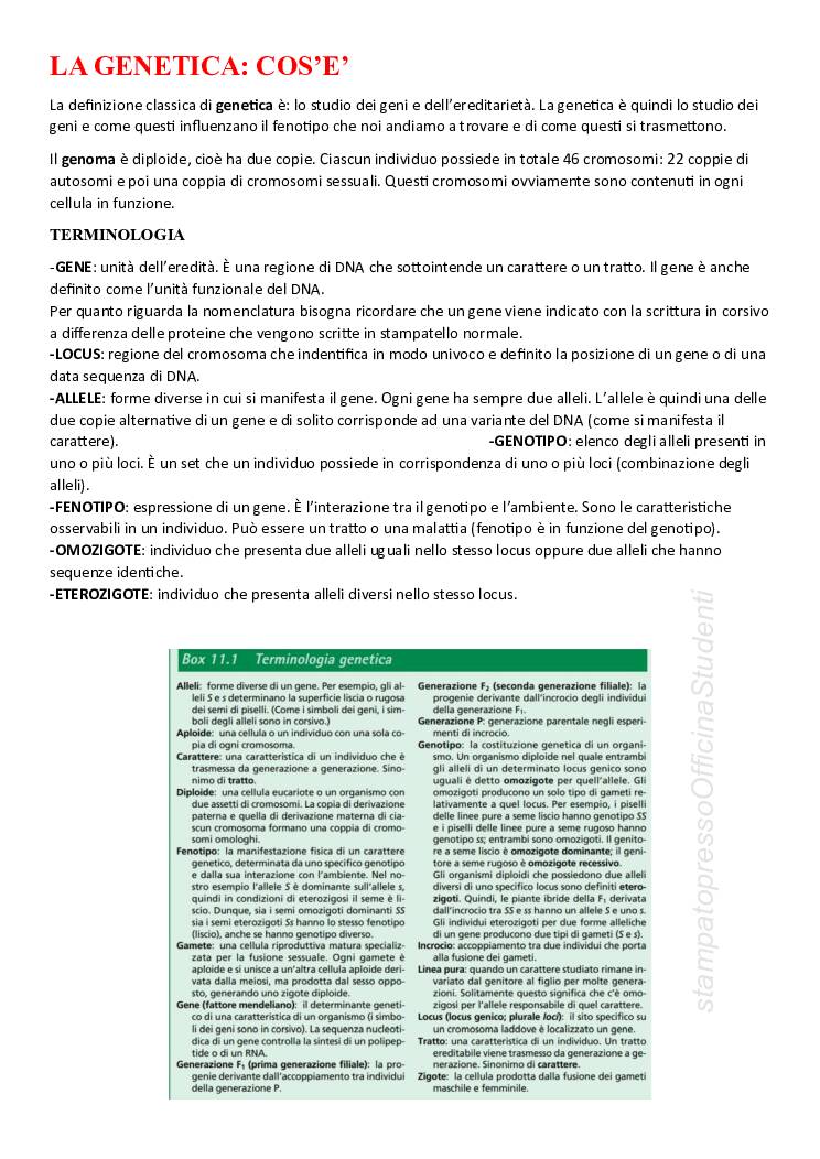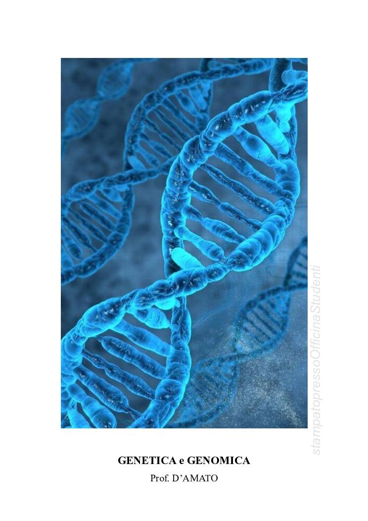 Appunti del corso di Genetica tenuto dal prof D’Amato e redatti da Mariangela Pia Nanna. Sbobinati e riscritti. Completi di tutte le immagini e di tutte le esercitazioni svolte.