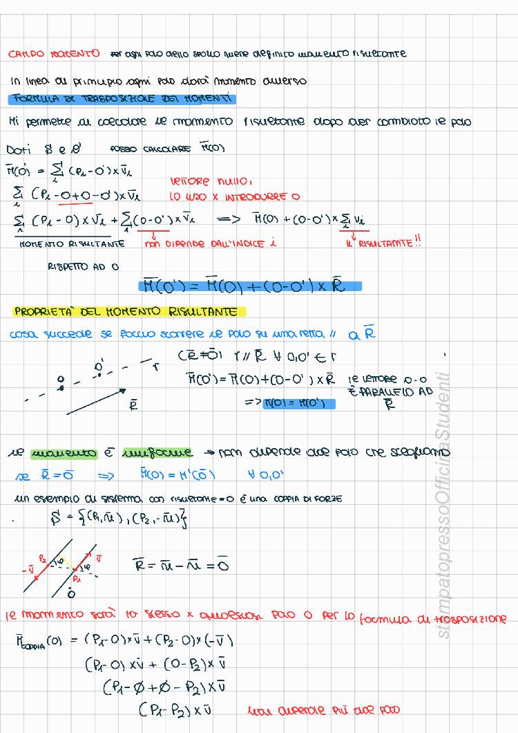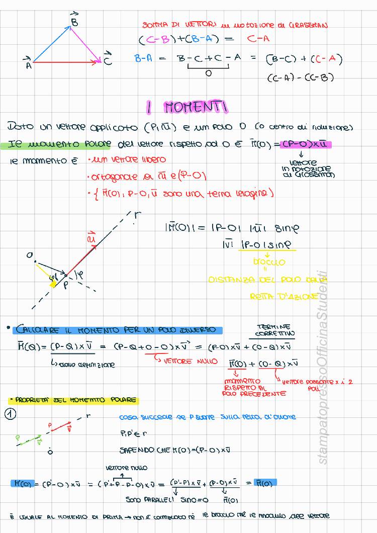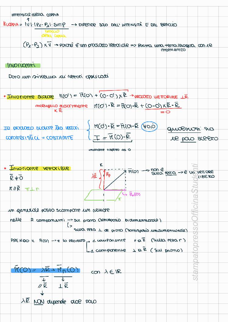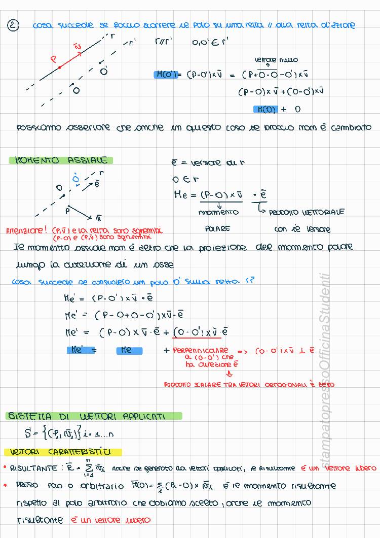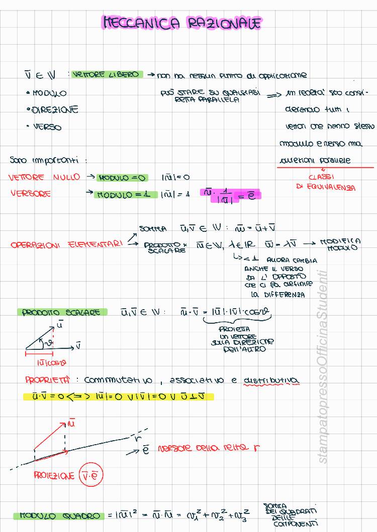 Appunti redatti da Francesca Gala, il documento presenta un’introduzione su argomenti propedeutici al corso: Vettori, proprietà e operazioni Momento vettoriale e proprietà Sistemi di vettori applicati e proprietà (invarianti, criteri di riducibilità, asse centrale) e tutta la parte relativa alla geometria delle masse con dimostrazioni dei principali teoremi: Centro di massa, Momenti d’inerzia, Momenti deviatori (cetrifughi), Huygens-Steiner, Momenti d’inerzia per assi concorrenti e Matrice d’inerzia con le sue proprietà. Gli appunti sono stati realizzati seguendo tutte le lezioni (e riascoltando le registrazioni fatte in classe) e integrando dal libro “Meccanica Razionale" di Biscari, Ruggeri, Saccomandi e Vianelli. Il materiale è chiaro ed esaustivo e mi ha permesso di superare la prova (scritta e orale) con 30/30. Il corso tenuto dal prof