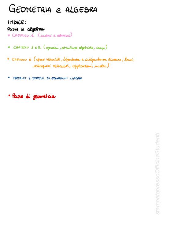 Appunti del corso di Geometria e Algebra della professoressa Cioffi presi a lezione, con alcuni esempi e esercizi svolti, redatti da Chiara Corbo