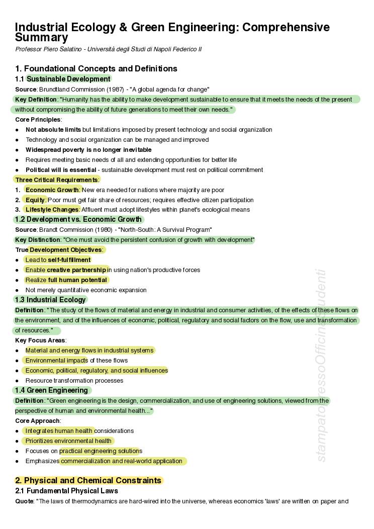 IEGE – INDUSTRIAL ECOLOGY AND GREEN ENGINEERING – Appunti schematici del corso per la preparazione dell’esame orale, tenuto dai prof Salatino e Chirone e redatti da Sara Arcopinto