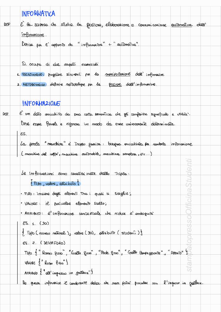 Appunti: i Contenuti concessi in licenza d’uso ad Officinastudenti e da questa messi a disposizione in anteprima parziale sul Sito affinché gli Studenti ne richiedano la stampa;