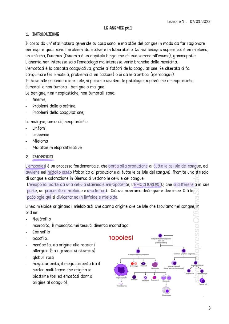 Corso di malattie del sangue per i tecnici di laboratorio biomedico, tenuto dal prof Visco e redatti da Celeste Zilio