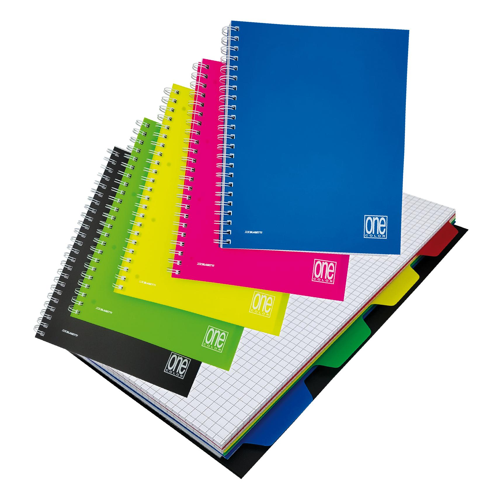 Il blocco per appunti Maxi One Color Spirale Laterale con divisori e copertina in plastica (polipropilene) è composto da 120 pagine in carta da 70 grammi.