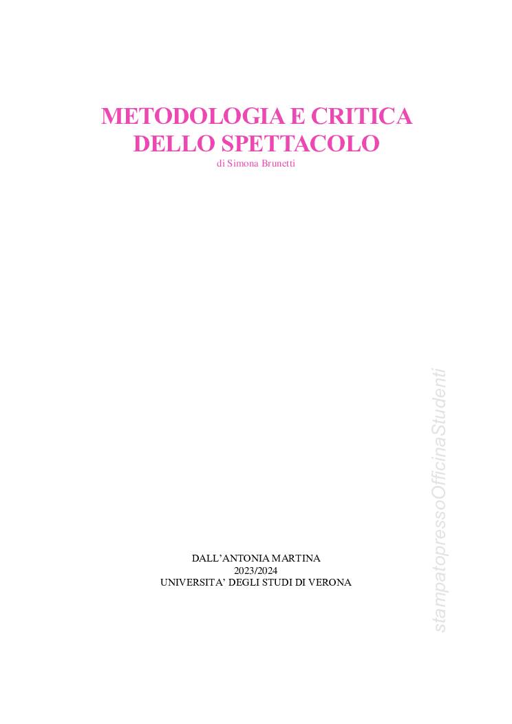 Riassunto del libro “Storia del teatro e dello spettacolo” con integrazione dagli appunti presi in aula e le slides della professoressa Brunetti, redatti da Martina Dell’ Antonia