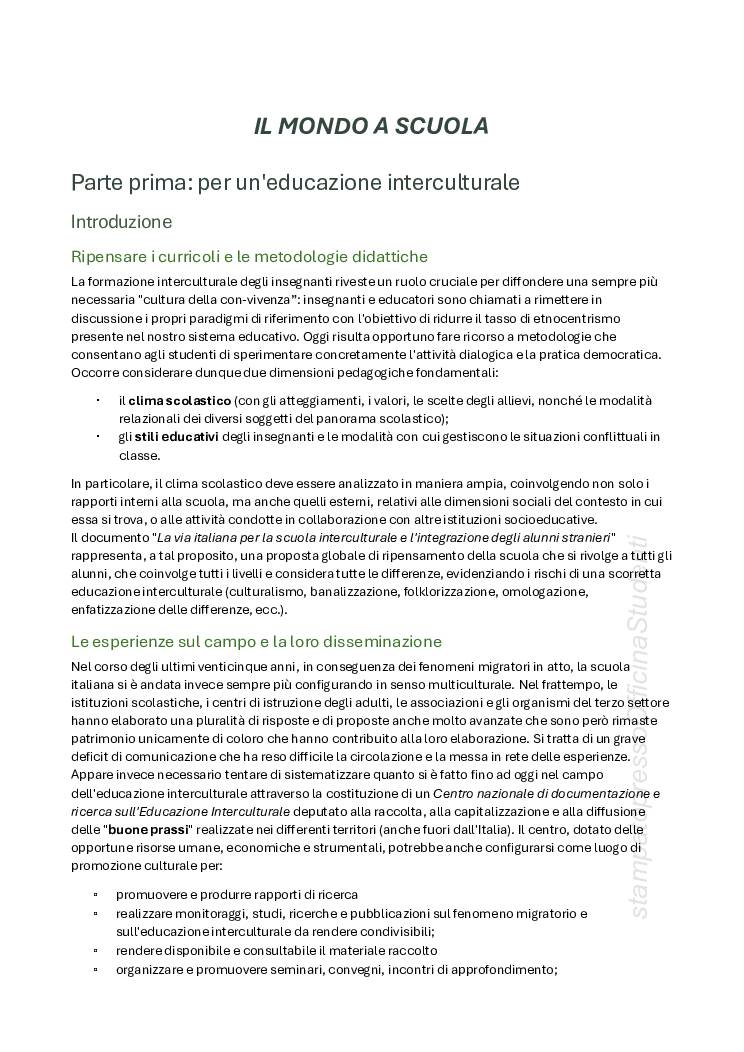 Sintesi “Il mondo a scuola” (Fiorucci, Catarci) appunti del corso di pedagogia interculturale tenuto dal prof Ferraro e redatti da Marika Lucariello