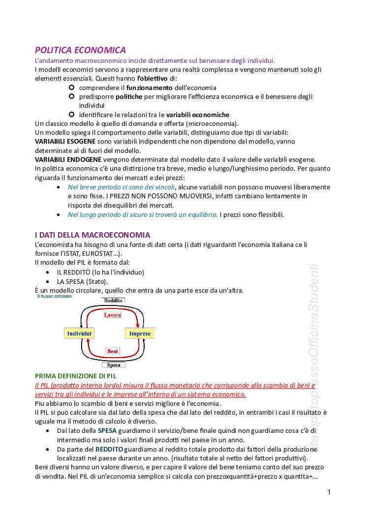 Appunti del corso di Politica Economica tenuto dal prof Ferraro e redatti da Sabrina Palomba, 9 cfu