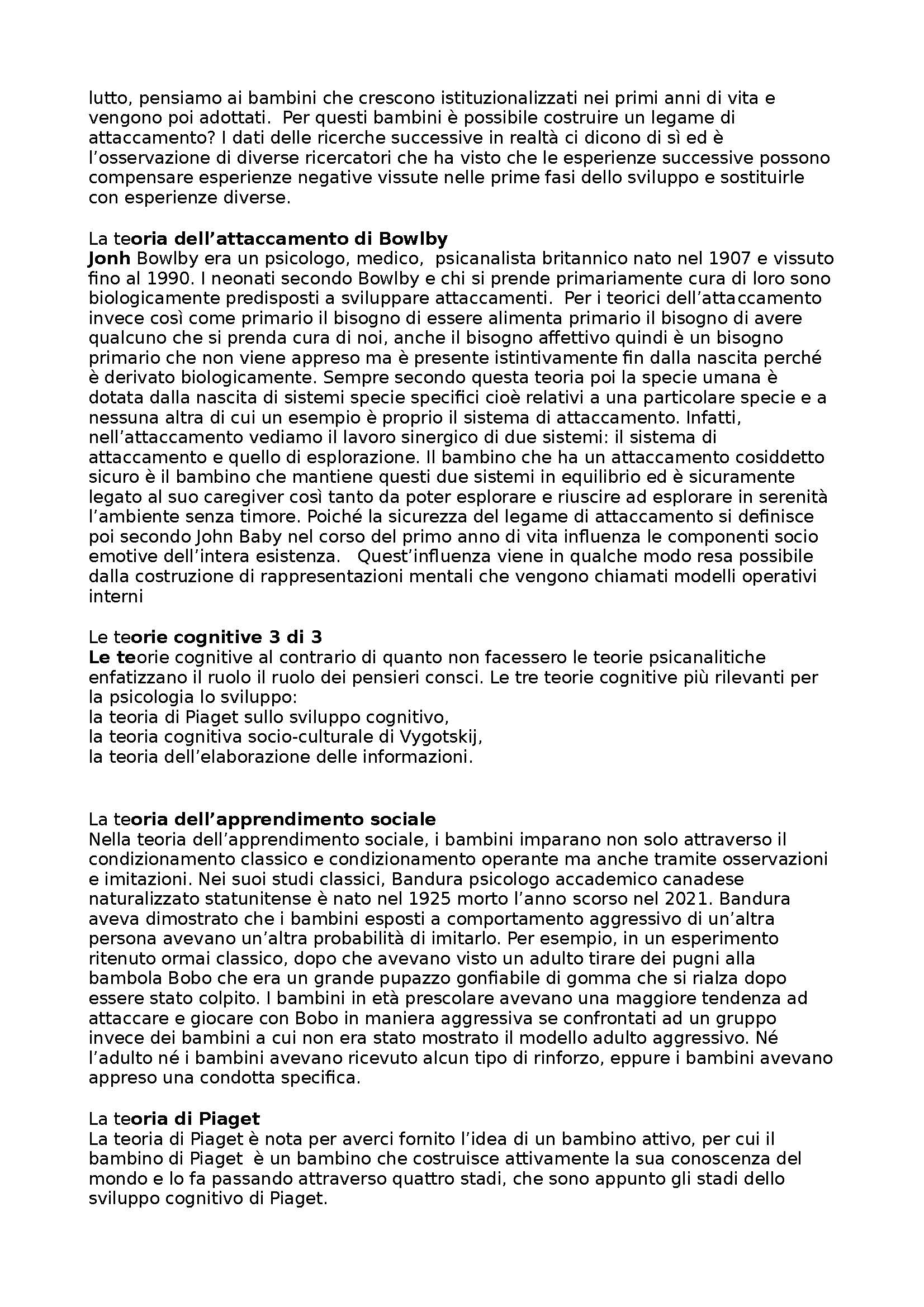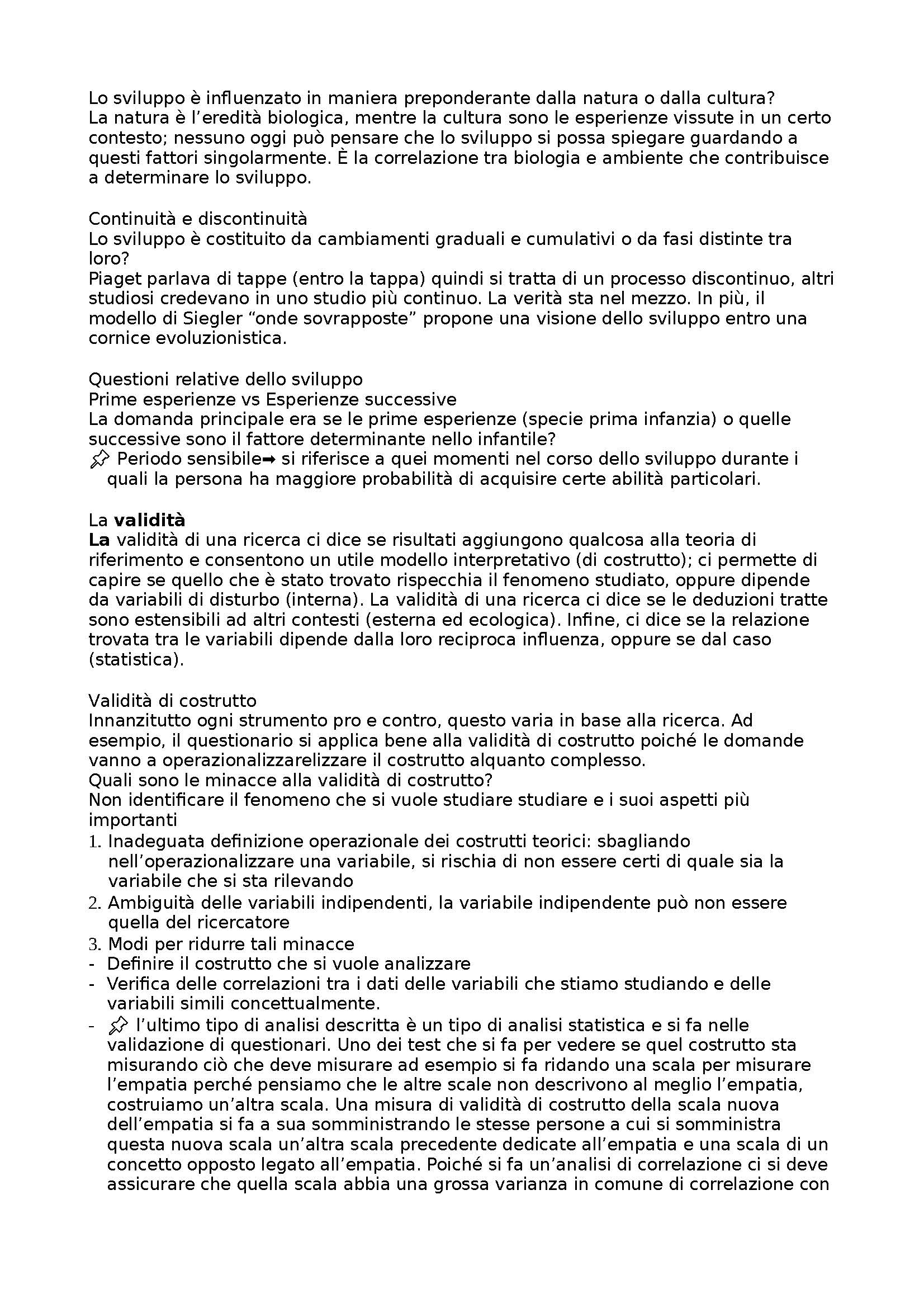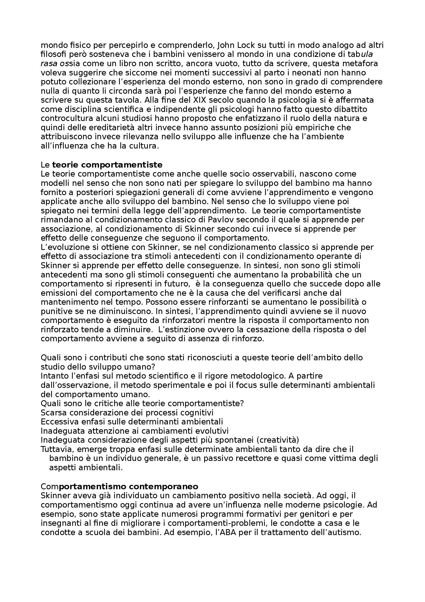 Il riassunto è completo di tutti i capitoli del testo + lezioni integrate del docente Sulla. Il manuale di Psicologia dello sviluppo si propone di offrire le informazioni teoriche necessarie a promuovere una conoscenza di base delle principali aree dello sviluppo psicologico e contenuti utili a far sì che tali conoscenze siano spendibili in ambito operativo applicativo. Con uno stile semplice e fruibile, sono fornite ai lettori e alle lettrici conoscenze utili a comprendere lo sviluppo nelle diverse fasi di vita. Inoltre, allo scopo di favorire riflessioni e collegamenti tra i contenuti teorici e i possibili risvolti applicativi, sono stati inseriti specificatamente per l’edizione italiana numerosi box di approfondimento arricchiti da suggerimenti pratici su strategie utili a supportare i bambini e le bambine nei processi di crescita e un approfondimento metodologico sulle tecniche di osservazione nei contesti educativi. Il testo è organizzato per domini psicologici e all’interno di essi per periodi di sviluppo; inoltre, sono inclusi un capitolo dedicato ai cambiamenti nell’arco di vita (con particolare attenzione all’età adulta e senile) e un capitolo sullo sviluppo atipico. Ciascun capitolo descrive in dettaglio un macro-tema e la letteratura associata, evidenziandone allo stesso tempo le questioni centrali e le problematiche emergenti.