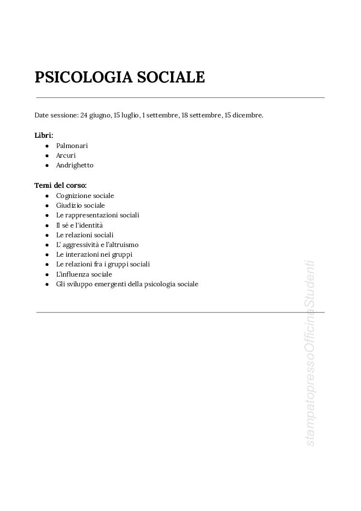 Dispense complete del programma del corso di psicologia sociale del primo anno di “Scienze e tecniche psicologiche” tenuto dal prof Imperato e redatti da Caterina Di Francia . Includono appunti presi a lezione, slide e integrazione con i libri proposti dal corso.