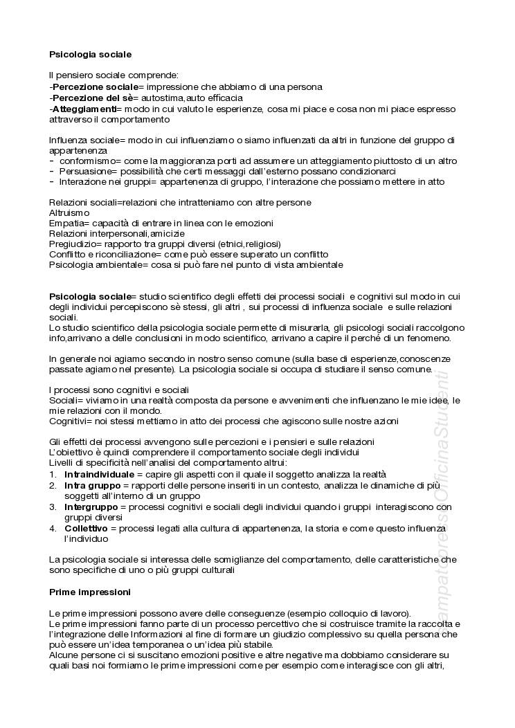 Vendo appunti di Psicologia Sociale per esame della sessione. Gli appunti derivano dalle spiegazioni ed esempi della prof Nerini a lezione, redatti da Margherita Taddei