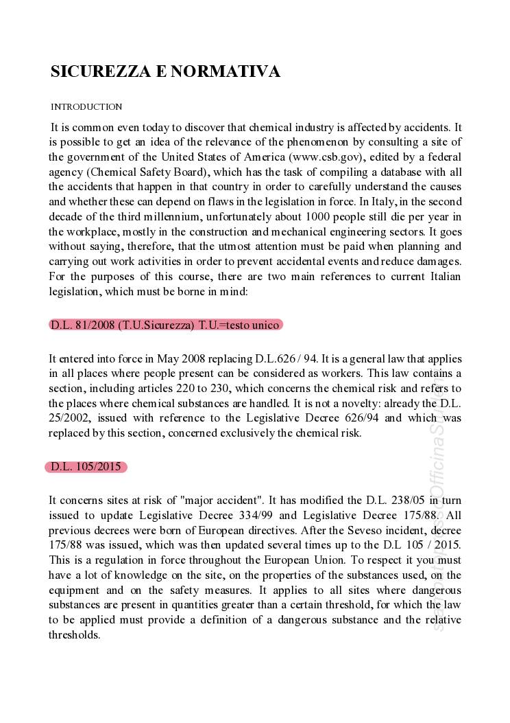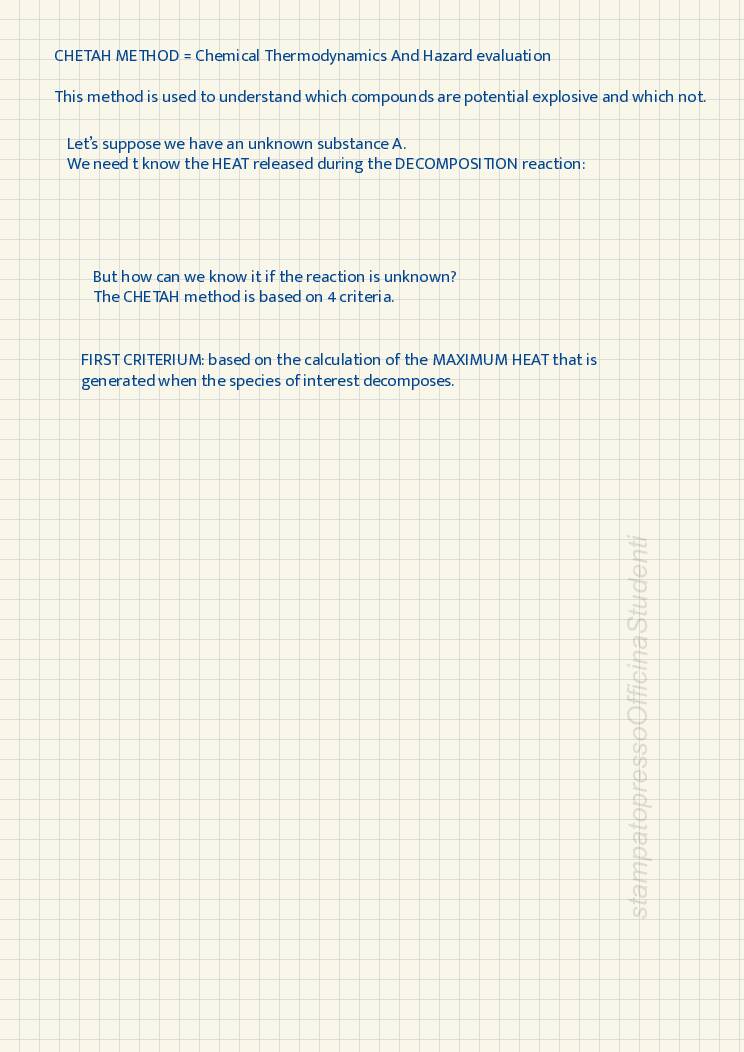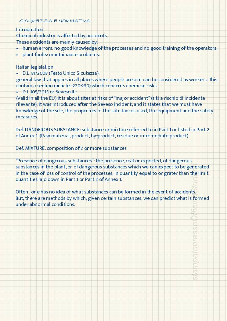 SAFETY IN CHEMICAL PROCESSES – Appunti completi sbobinati, con schemi e spiegazioni dei grafici. Appunti del corso tenuto dal prof Andreozzi e redatti da Sara Arcopinto