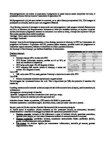 Appunti del corso di Sistemi Operativi da 9 CFU, tenuto dal prof. Natella e redatti da Francesco Annecchino. Questi appunti coprono in modo sintetico ma esaustivo tutti gli argomenti principali trattati nel corso. Sono stati progettati per consentire una preparazione efficace per l’esame, anche a chi non ha avuto la possibilità di seguire le lezioni.
