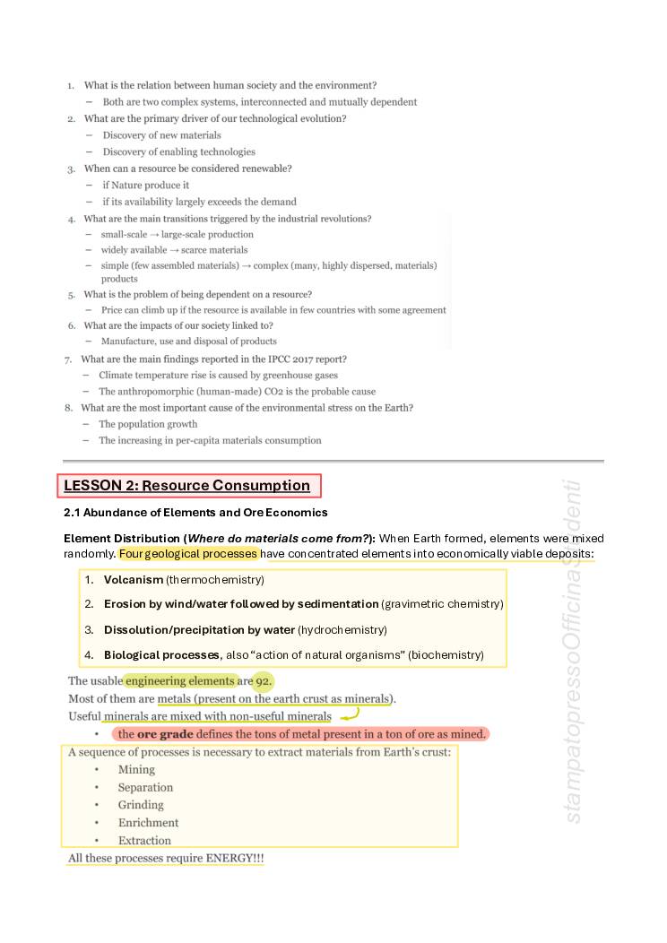 SUSTAINABLE MATERIALS – SOSTENIBILITA’ AMBIENTALE DEI MATERIALI – Appunti del corso tenuto dal prof Aprea e redatti da Sara Arcopinto, presi a lezione. Il corso è per Ingegneria dei Materiali e Ingegneria Chimica (Minor in Green Technologies). Appunti validi sia per il corso in italiano che quello in inglese.