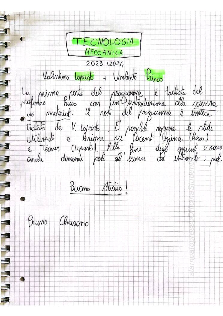 appunti del corso di tecnologia meccanica tenuto dal prof lo presto e prisco e redatti da bruno chiusano, 12 cfu