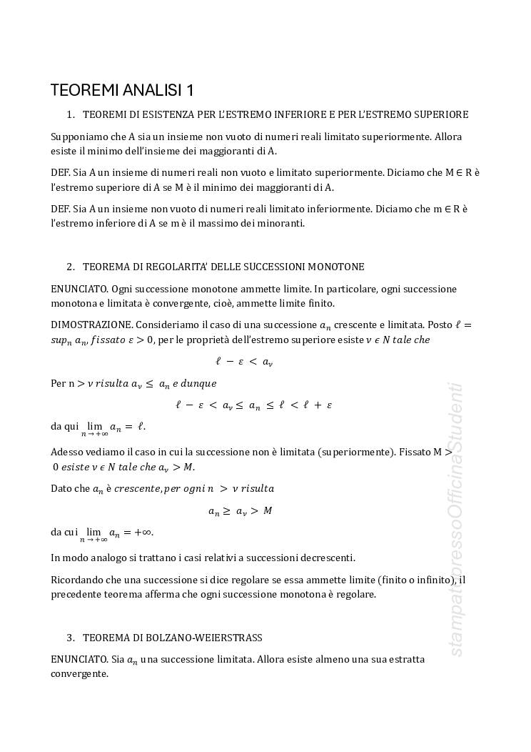 Tutti i teoremi di analisi 1 che devi sapere per l’esame orale. i teoremi sono stati studiati dal libro, solo alcuni da matematika.it. gli appunti sono stati scritti a computer da Silvia Ciccarelli il corso tenuto dal prof Farroni
